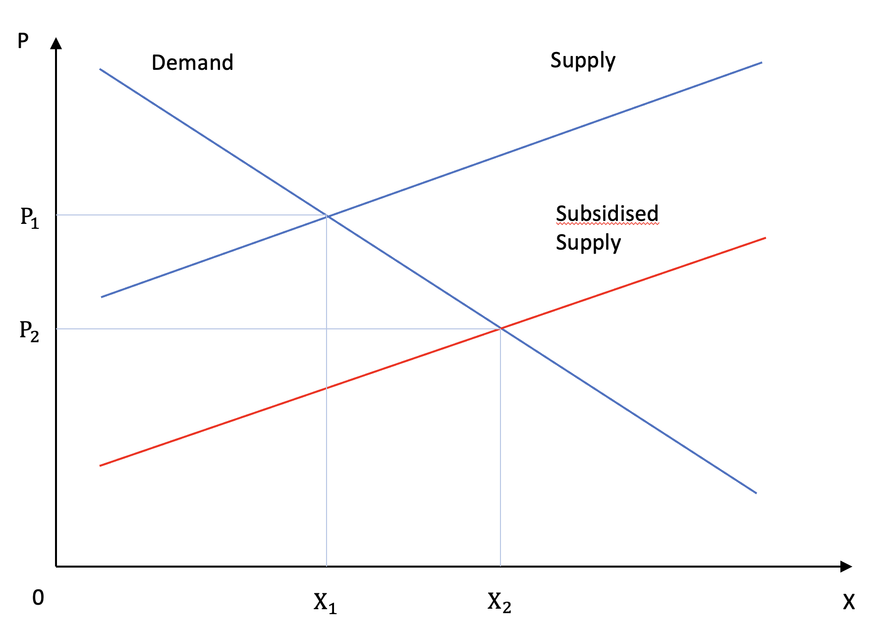 chart Equilibrium shift resulting from a subsidy