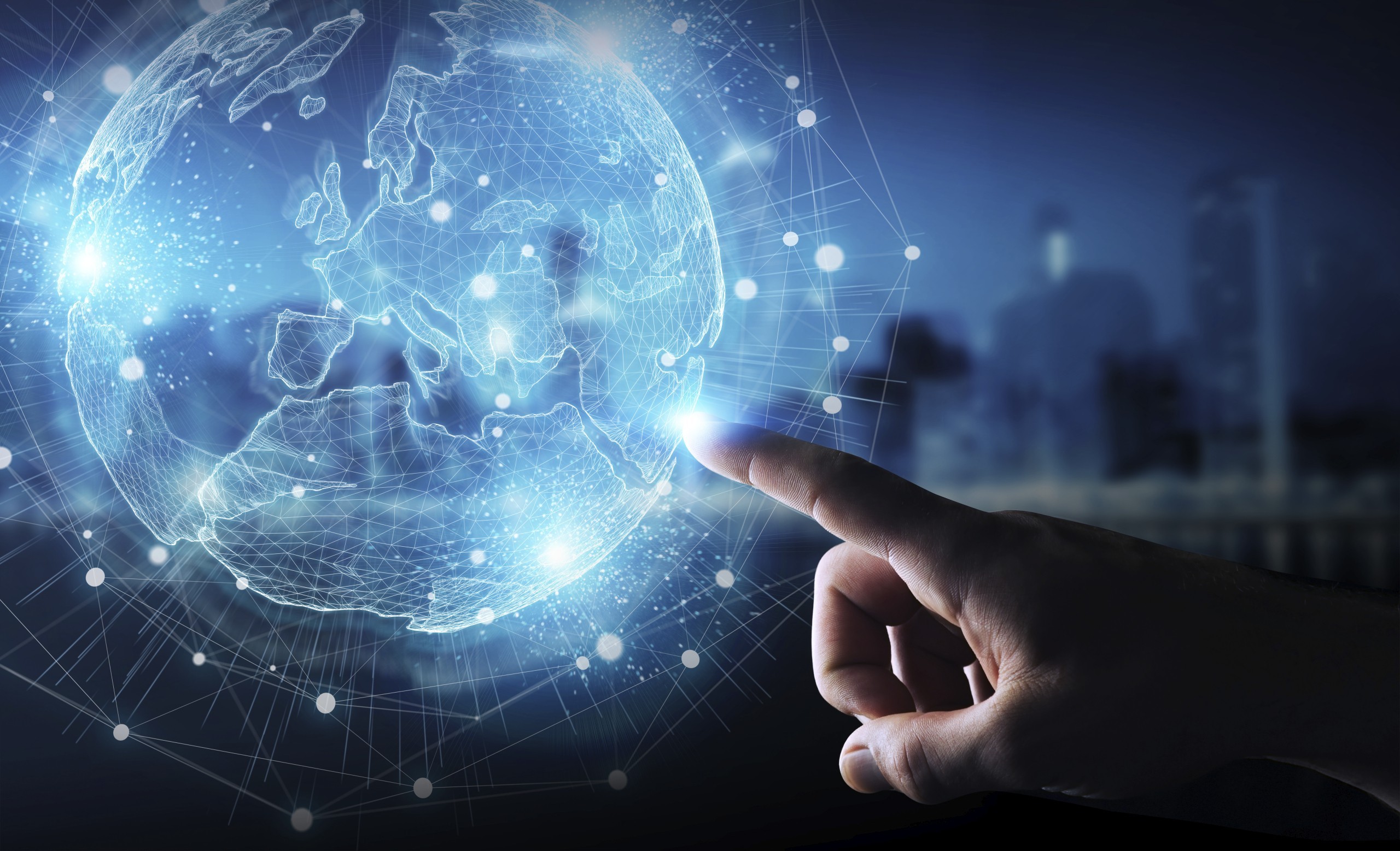 Businessman hand in dark using Europe map globe network hologram 3D rendering. Geschäftsmann Hand im Dunkeln mit Europa-Karte Globus Netzwerk Hologramm 3D-Rendering.